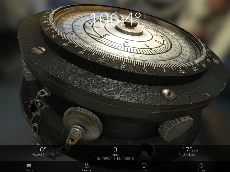 "WOTA: U-Boat Compass" for iOS is a fully working detailed 3D-Simulation of a U-Boat compass used on German Type VII Uboats during World War 2. Available on the App Store. (Might not be available in some countries)